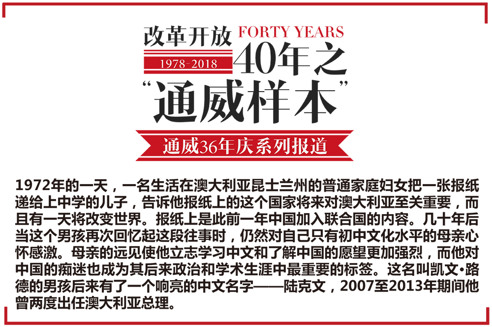 中學(xué)畢業(yè)后,陸克文前往首都堪培拉,就讀于澳大利亞國(guó)立大學(xué),開始系統(tǒng)學(xué)習(xí)中國(guó)歷史和語言文化。“我依然記得1978年還在讀本科的時(shí)候,努力閱讀《人民日?qǐng)?bào)》關(guān)于十一屆三中全會(huì)報(bào)道的情景。從那時(shí)起,每一屆中國(guó)共產(chǎn)黨代表大會(huì)我都會(huì)學(xué)習(xí)。所以,我在某種程度上見證了改革開放以來中國(guó)發(fā)生的巨大變化”。盡管時(shí)光已經(jīng)過去了近40年,陸克文回憶起當(dāng)年的情景,仍然歷歷在目。