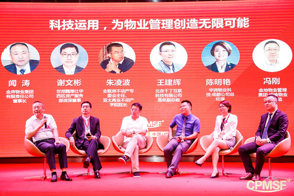 金房物業集團有限責任公司董事長聞濤,世邦魏理仕華西區資產服務部資深董事謝文彬,全聯房地產商會商業不動產專委會主任、亞太商業不動產學院院長朱凌波,北京千丁互聯科技有限公司高級副總裁王建輝,華潤物業科技·成都公司總經理陳明艷,金地物業管理集團·成渝物業公司總監馮剛圍繞“科技運用,為物業管理創造無限可能”進行了熱烈討論與分享。