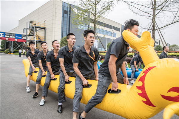 成都基地旱地龍舟比賽現(xiàn)場(chǎng)