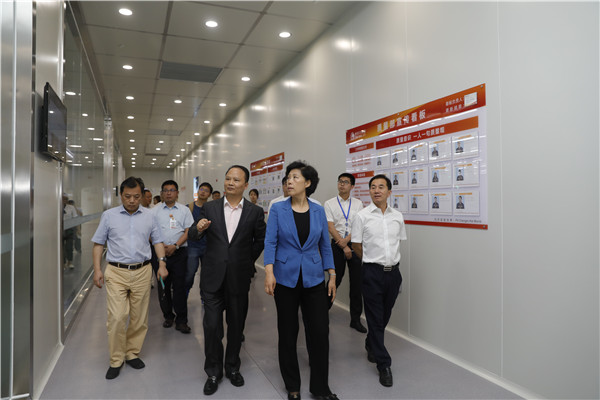 劉漢元主席陪同田向利部長(zhǎng)參觀通威太陽(yáng)能智能制造生產(chǎn)車間