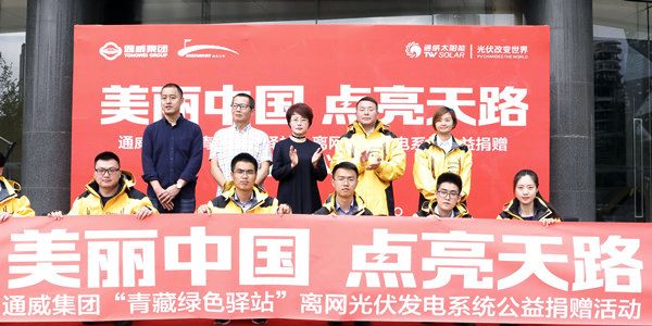 本次通威集團“青藏綠色驛站”公益捐贈項目得到十一屆全國政協常委、全國人大代表、通威集團董事局劉漢元主席,通威集團禚玉嬌總裁的充分肯定和大力支持。據了解,“青藏綠色驛站”由綠色江河環保促進會發起建立,致力于通過志愿者的長期服務,保護青藏公路沿線及周邊生態環境,宣傳環保理念。然而,由于“青藏綠色驛站”地處高寒、高海拔環境,用電問題成為了驛站運行中的一大難題。作為全球光伏新能源行業的龍頭企業,通威集團充分發揚企業社會責任,向“青藏綠色驛站”捐贈三套離網光伏發電系統,為驛站日常運行提供了清潔的光伏電力,用清潔能源點亮了世界屋脊!通威本次捐贈的三大驛站分別位于昆侖山驛站、三江源驛站、風火口驛站,平均海拔超過4500米。經過近一個月時間的緊張籌備,通威太陽能光伏組件及相關物資順利抵達“青藏綠色驛站”格爾木驛站,在通威新能源公司工作人員與時間賽跑的高強度工作下, 目前,三套離網光伏發電系統已完成安裝、調試工作,并成功發電。在5月4日的捐贈儀式后,三套系統將正式投運,源源不斷地向“青藏綠色驛站”輸送清潔電力。