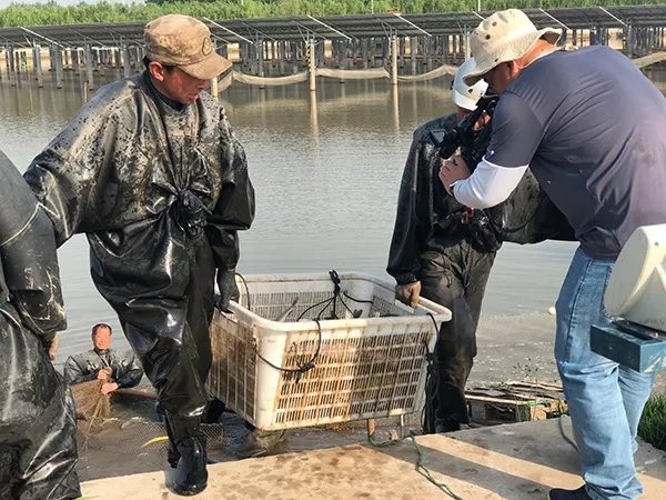 國務院特殊津貼專家、通威股份首席水產專家吳宗文為記者講解三大養殖模式