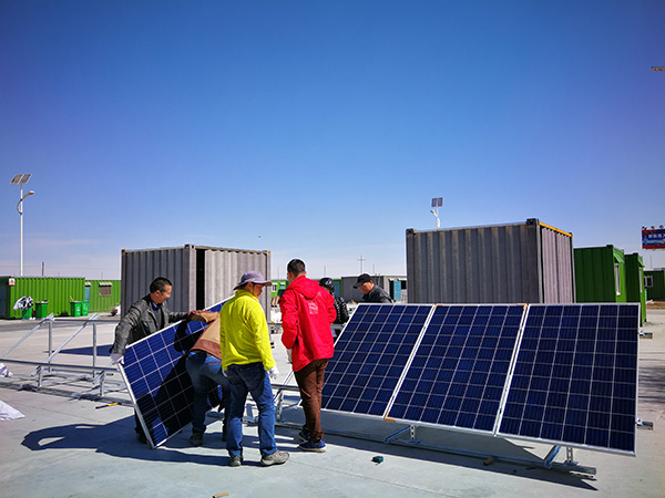 據了解,本次離網光伏發電系統的全部組件均由通威集團新能源產業鏈中游的通威太陽能有限公司提供;光伏系統安裝建設由產業鏈下游的通威新能源公司負責。為了準備高原氣候下的建設工作,負責項目建設的新能源工作人員4月13日就抵達了格爾木,對高原氣候工作下的器具、安裝輔材、相關物資等進行集中采購和準備。在光伏組件抵達格爾木后,項目工作人員迅速在“青藏綠色驛站”格爾木驛站開始了光伏發電系統的首次發電、調試工作。