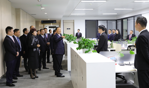 主席逐一視察各辦公區(qū)域,看望并親切問(wèn)候員工