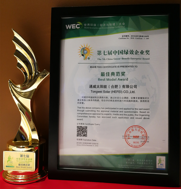 大會揭曉了國際碳金獎評選結果,以“打造世界級清潔能源企業(yè),讓太陽能造福人類”為發(fā)展愿景的通威太陽能合肥公司,在清潔能源方面的突出貢獻及卓越的經營績效,榮膺國際碳金獎單項獎"第七屆中國綠效企業(yè)獎?最佳典范獎"。此外,通威太陽能董事長謝毅榮獲“第七屆國際碳金獎特別獎?綠色低碳發(fā)展人物”殊榮。