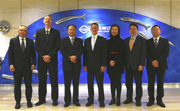 1月29日,美國駐成都總領事林杰偉一行蒞臨通威考察,十一屆全國政協常委、通威集團董事局劉漢元主席,通威集團副總裁胡榮柱、副總裁黃其剛等領導熱情接待并座談。