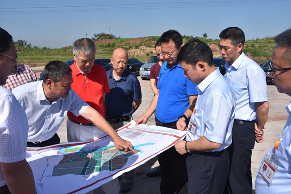 通橋區(qū)委書記張國清向樂山市人大常委會副主任趙田一行介紹園區(qū)規(guī)劃