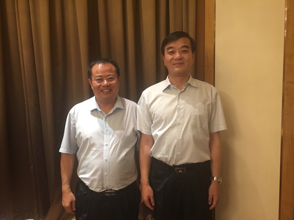 通威股份郭異忠總裁與鹽城市副市長崔浩合影留念