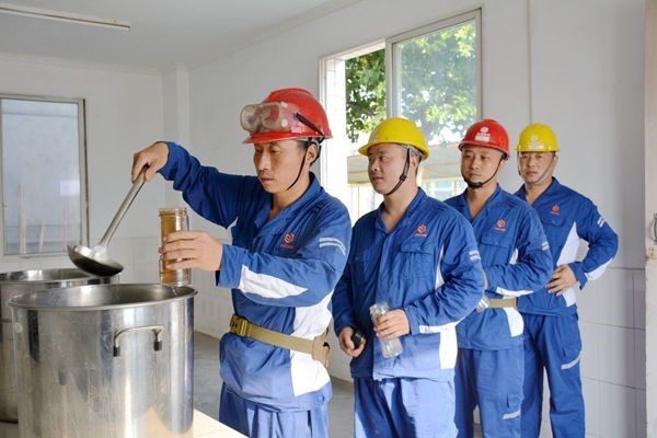 據(jù)悉,公司準備的中藥包里含有藿香、甘草、板藍根、金銀花等十四種防暑藥材,食堂工作人員負責藥材的熬制和配送。因近段時間持續(xù)的高溫天氣,為了保障一線員工的飲用量,食堂工作人員每天下午對各點飲用量進行查看,對剩余量小的給予不間斷及時補給。