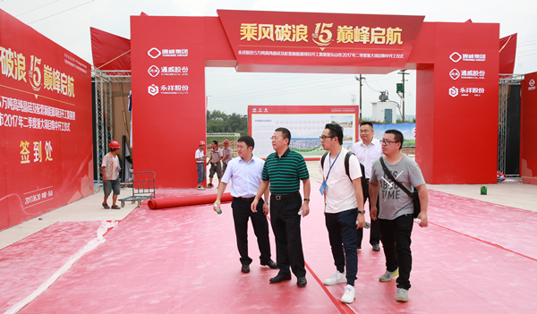 為確保盛會的成功舉行,6月28日一早,根據(jù)集團(tuán)劉漢元主席、禚玉嬌總裁指示,通威集團(tuán)副總裁黃其剛趕赴樂山,與通威股份董事、永祥股份董事長兼總經(jīng)理段雍第一時間查看慶典籌備情況,先后檢查了活動場地,詳細(xì)了解了嘉賓指引、舞臺方位、安保布置、交通路線等各方面工作規(guī)劃,并現(xiàn)場一一確定執(zhí)行細(xì)節(jié),要求執(zhí)行到位。目前,現(xiàn)場工作人員正緊張進(jìn)行最后籌備工作,全力以赴為本次盛大活動成功舉行保駕護(hù)航。