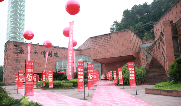 為了迎接嘉賓的到來,現(xiàn)場工作人員已做好了充分準(zhǔn)備。在樂山開元名都大酒店,負(fù)責(zé)簽到的工作人員熱情接待著陸續(xù)到來的嘉賓;慶典舉辦地————樂山大佛劇院分外熱鬧,各項布置已到位,一排排整齊的道旗隨風(fēng)飄揚(yáng),現(xiàn)場充滿著隆重而歡樂的氣氛。