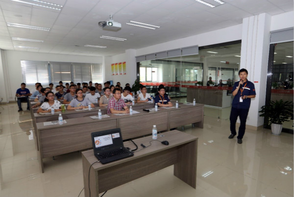 同學們分批來到行政樓二樓培訓室和S1電池片生產車間學習交流。在行政樓二樓培訓室,同學們詳細了解了通威集團的發(fā)展歷程,通威太陽能產能規(guī)模、發(fā)展情況等。