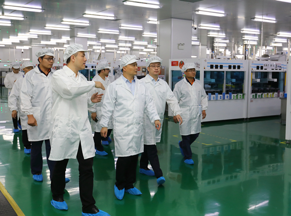 劉主席先后來到公司組件廠、P5電池車間,深入了解現場管理運行情況,并對合肥公司的現場精細化管理給予了高度評價。劉主席充分肯定了合肥公司目前的環保工作,并強調公司要繼續強化達標排放的措施管理,加強廢水廢氣管理,建立生態環境治理長效機制。