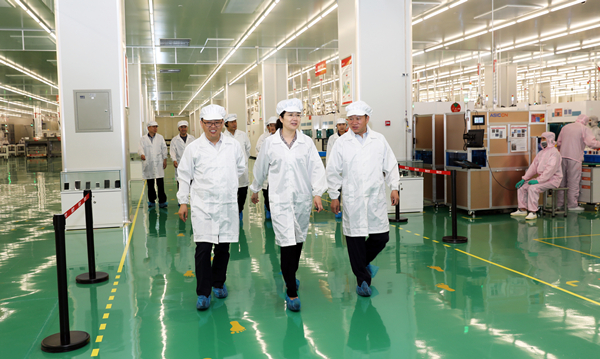 隨后,考察團(tuán)一行實(shí)地參觀了通威太陽能(成都)有限公司S1電池車間,詳細(xì)了解了通威太陽能電池片的生產(chǎn)工藝流程、產(chǎn)能情況和設(shè)備使用情況。考察團(tuán)一行對(duì)S1車間高效的現(xiàn)場管理和高度自動(dòng)化的設(shè)備設(shè)施給予了高度評(píng)價(jià),希望蘇川兩省共同努力,將區(qū)域協(xié)同發(fā)展推向更深層次、更高水平。