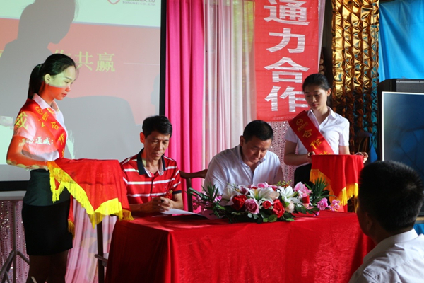 海南通威總經(jīng)理何聯(lián)軍與中國(guó)人民財(cái)產(chǎn)保險(xiǎn)股份公司保亭分公司現(xiàn)場(chǎng)簽約