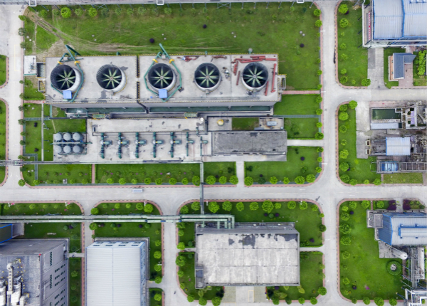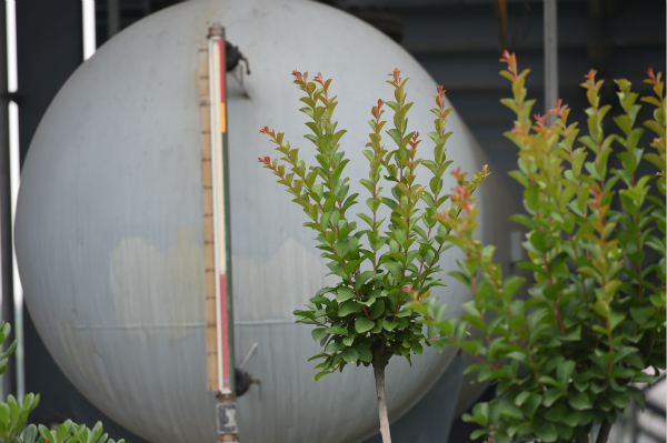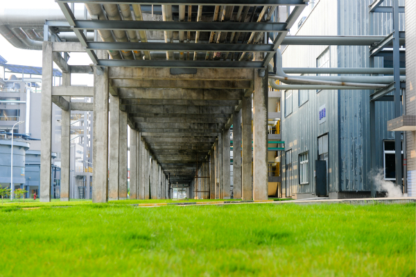 廠區(qū)設(shè)備與綠樹青草相映成趣
