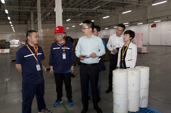合肥基地首席運營官謝泰宏細致查看倉庫出入庫明細