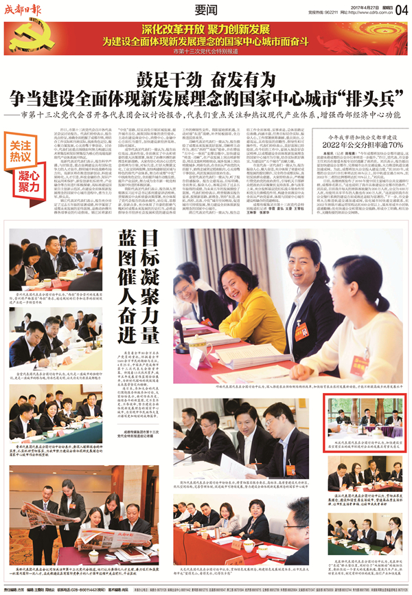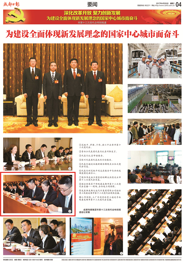 《成都日報》對中國共產(chǎn)黨成都市第十三次代表大會進行了詳細報道,并于4月26日、27日連續(xù)刊發(fā)通威太陽能(合肥、成都)有限公司董事長謝毅參加會議及在分團討論中發(fā)言相關報道。