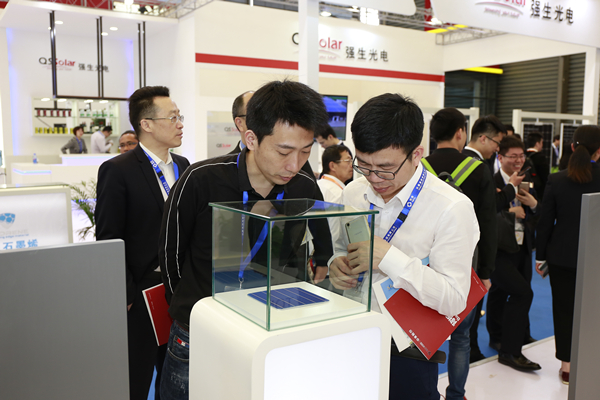參展商在通威集團展臺查看太陽能電池片