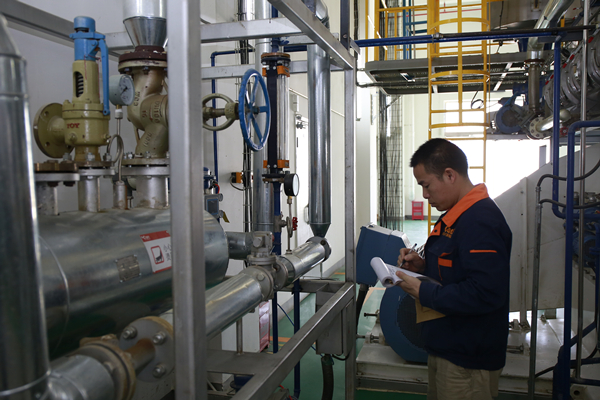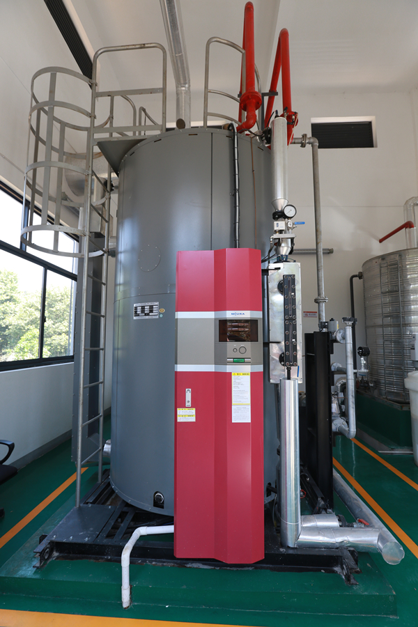 在距“科技城堡”幾百米外,還有一個默默堅守崗位的“造血系統(tǒng)”————日本三浦蒸汽鍋爐。據(jù)介紹,該款鍋爐實現(xiàn)產(chǎn)氣時間從傳統(tǒng)的30分鐘縮短為5分鐘,極大縮短了整個流程的生產(chǎn)時間;同時,鍋爐占地面積僅為傳統(tǒng)鍋爐的四分之一,占地面積大大減小。