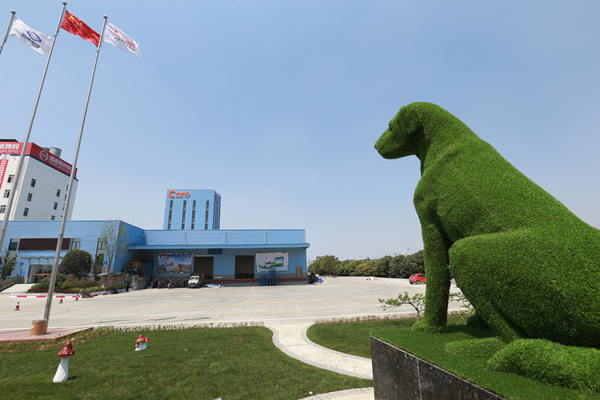 小狗造型的植物景觀為新廠區(qū)增添生機