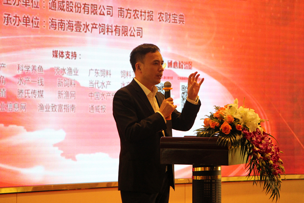 會議期間,通威股份水產科研所所長陳效儒,湛江海先鋒生物科技總經理萬超,片區品管牽頭人、海南海壹公司品管部經理楊衛國分別作了《技術突破 鑄就輝煌》、《海壹生物動保產品推介》、《海南海壹產品質量介紹》的主題發言。上述專家管理團隊的相繼發言,向客戶多角度展示海南海壹技術、質量管控和種苗、生物科技產品的實力,增強了客戶信心。