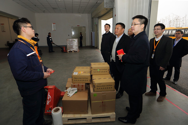 2月2日大年初六,謝董事長又趕赴成都公司,向奮斗在工作崗位的全體員工送上了春意洋洋的新年祝福。謝董事長先后來到S1電池車間、各部門辦公室、成品倉庫等,向大家送上開門紅包,詳細詢問了節日期間值班情況,對新春假期里員工們的辛勤付出表示了真摯的感謝,鼓勵大家以通威“誠、信、正、一”經營理念為工作根本,為2017全年工作目標和各項任務圓滿完成起好步、開好頭。