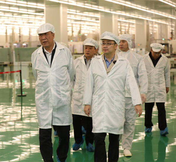 謝毅董事長(zhǎng)陪同張世明副市長(zhǎng)參觀高效晶硅S1電池車間