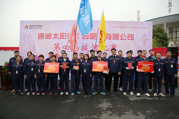 通威太陽能成都、合肥兩地公司工會主席王耀頤、胡永明分別向兩地冠、亞、季軍頒發(fā)了5000元、3000元、2000元現(xiàn)金獎勵。