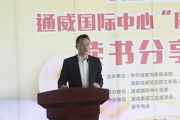 11月16日下午,由中共成都市委統(tǒng)戰(zhàn)部、成都高新區(qū)黨群工作局聯(lián)合主辦,通威國際中心黨委承辦,以“讀書勵志 崗位成才”為主題的通威國際中心“同心家園” 讀書分享會成功舉行。成都市高新區(qū)黨群工作局副局長張義薇,通威國際中心黨委書記、通威集團監(jiān)事會主席陳星宇,通威集團工會主席李思宇出席,14名來自通威集團及入駐通威國際中心企業(yè)的員工代表參加活動。