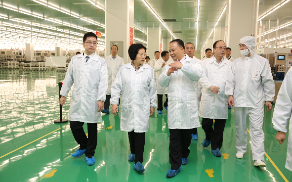 孫春蘭部長視察雙流5GW高效晶硅電池項(xiàng)目S1生產(chǎn)車間