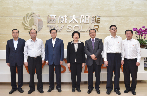 在公司大廳展板前,劉漢元主席向?qū)O春蘭部長介紹了通威集團(tuán)34年的發(fā)展歷程。劉主席表示,作為中國乃至全球唯一一家同時涉足農(nóng)業(yè)和新能源光伏產(chǎn)業(yè)的龍頭企業(yè),通威真正實(shí)現(xiàn)了農(nóng)業(yè)和光伏高效協(xié)同發(fā)展,最終將成為全球領(lǐng)先的綠色農(nóng)業(yè)和綠色能源供應(yīng)商。劉主席著重介紹了通威正大力推進(jìn)的“漁光一體”戰(zhàn)略,他表示,“漁光一體”項(xiàng)目能實(shí)現(xiàn)“水上產(chǎn)清潔能源,水下產(chǎn)健康通威魚”,是可持續(xù)的綠色發(fā)展模式,行業(yè)發(fā)展前景廣闊。期間,雙流區(qū)周先毅書記向?qū)O部長介紹了雙流區(qū)發(fā)展?fàn)顩r,雙流區(qū)正大力實(shí)施工業(yè)強(qiáng)基行動,大抓項(xiàng)目,抓大項(xiàng)目,在“十三五”末,力爭建成西部制造業(yè)高地,天府新區(qū)經(jīng)濟(jì)核心增長極。過程中,通威國際中心黨委陳星宇書記向?qū)O部長一行領(lǐng)導(dǎo)介紹了位于通威國際中心的成都高新區(qū)“同心家園”運(yùn)行情況?!巴募覉@”是在四川省委統(tǒng)戰(zhàn)部、成都市委統(tǒng)戰(zhàn)部指導(dǎo)下,由高新區(qū)黨群工作局(統(tǒng)戰(zhàn)部)打造的標(biāo)準(zhǔn)化統(tǒng)戰(zhàn)工作綜合性服務(wù)平臺。
