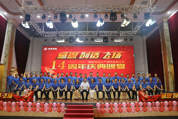 9月22日至23日,以“劍鋒出鞘 再展宏圖”為主題的蝦特料片區2016年度工作總結會暨2017年度工作計劃會在海南海壹隆重召開。通威股份蝦特料片區總裁劉明峰、通威集團工會主席李思宇、通威股份生產部部長陳興偉、品管部部長董秀洪、通威大學執行副校長張紅纓等出席會議,蝦特料片區各職能線總監,片區各公司總經理, 營銷、內務、財務部、市場部及服務部主要負責人共計50余人參會。會議期間,海南海壹舉辦了14周年慶典晚宴,全體與會嘉賓以及海南海壹全體員工出席晚宴。