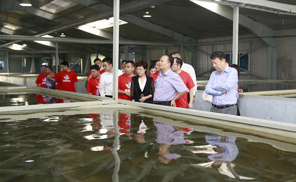 隨后,劉漢元主席、禚玉嬌總裁一行在錢總的陪同下參觀了中洋河豚莊園,走進基地現(xiàn)代化的養(yǎng)殖車間及生態(tài)魚類加工中心、營養(yǎng)中心、配送中心、珍稀魚類繁育中心等,詳細了解中洋河豚及其它生態(tài)魚類的養(yǎng)殖規(guī)模、關鍵技術、深加工產品開發(fā)等。劉主席對中洋集團現(xiàn)代化、自動化、集約化的養(yǎng)殖模式給予了稱贊,并表示中洋集團的工程化養(yǎng)殖值得學習。