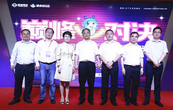 十一屆全國政協常委、通威集團董事局劉漢元主席、通威集團禚玉嬌總裁,通威股份嚴虎副董事長、通威股份郭異忠總裁,通威集團副總裁黃其剛,通威股份副總裁兼華東戰區總裁王尚文,通威太陽能(合肥、成都)有限公司董事長謝毅等集團、股份領導出席決賽現場,為選手們加油鼓勁,成為比賽最大的驚喜。劉主席不僅見證了“超級通心粉”十強的出爐,更貼心地與現場通心粉自拍大合影留念,讓整個活動在快樂和感動中劃上了圓滿的句號。