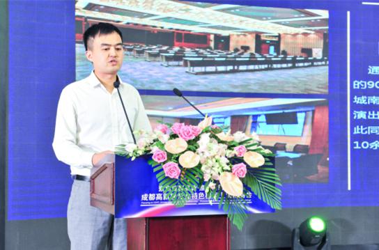 作為成都高新區高品質專業特色樓宇代表,通宇物業副總經理崔維順在大會上作推介,崔總詳細介紹了通威集團農業和新能源兩大主業協同發展現狀及集團多元化板塊發展狀況,并重點介紹了通威國際中心“單一業權、全精裝交付、17000㎡超級廣場、900人國際會議中心、先進的軟硬件配置、一流的物業服務”等6大核心價值及所取得的系列榮譽。