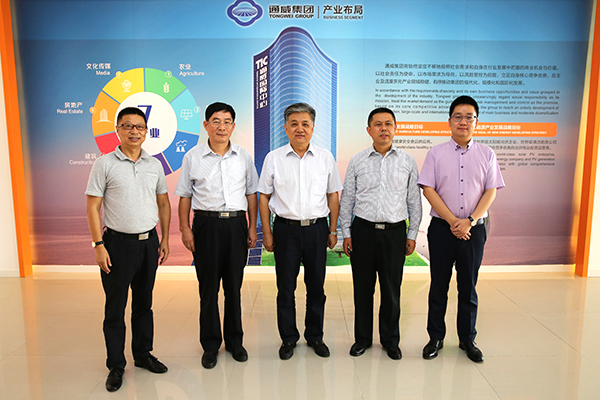 8月23日,民建中央副主席吳曉青,民建中央常委、安徽省政協(xié)副主席、安徽省委主委李修松,四川省政協(xié)常委、民建四川省委經濟委副主任、四川省發(fā)改委巡視員艾明建,民建中央委員、中國光伏行業(yè)協(xié)會理事長、天合光能董事長兼首席執(zhí)行官高紀凡一行蒞臨通威太陽能(合肥)有限公司視察,通威太陽能(合肥、成都)有限公司董事長謝毅及公司高管團隊熱情接待。