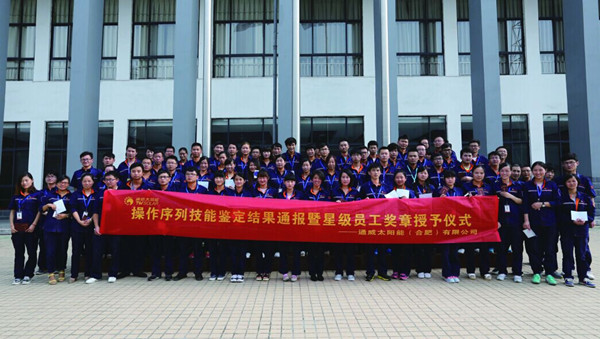 7月19日,通威太陽能(合肥)有限公司首屆操作序列員工技術等級評定結果通報暨星級員工臂章授予儀式成功舉行。通威太陽能(合肥)有限公司高管及中干團隊參加活動。