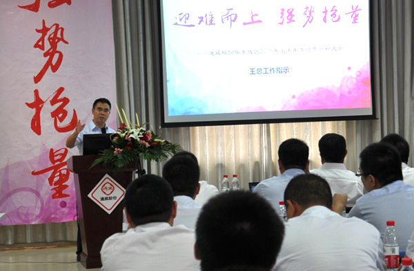 會議上,華東戰(zhàn)區(qū)各分子公司總經(jīng)理首先就本公司上半年市場工作推進情況及三季度工作計劃作了匯報,戰(zhàn)區(qū)財務部和市場部匯報了上半年華東戰(zhàn)區(qū)總體經(jīng)營及對標管理的情況。王總在聽取匯報后指出,大的市場競爭格局已發(fā)生變化,華東戰(zhàn)區(qū)需要做的就是“迎難而上,強勢搶量”。迎難而上是要從365示范、市場網(wǎng)絡、提升產(chǎn)品檔次三個方面入手;強勢搶量則是從塘口會、新網(wǎng)絡、經(jīng)銷商銷量三個方面發(fā)力。隨后,王總對戰(zhàn)區(qū)各分子公司下一步的行動作了具體部署。