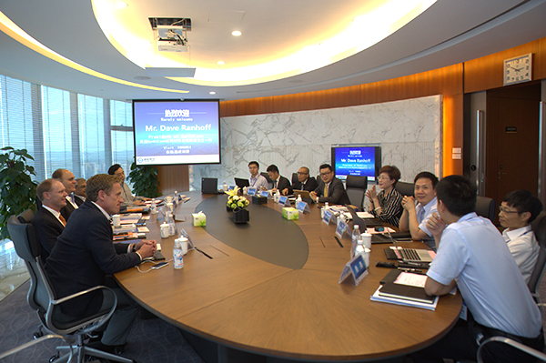 禚玉嬌總裁與美國SunEdison公司太陽能材料總裁Dave Ranhoff一行座談