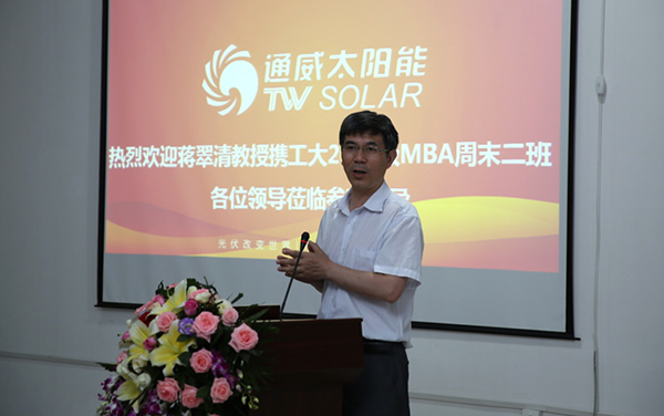 近日,合肥工業大學教授蔣翠清攜工大2014級MBA周末二班學員到訪通威太陽能(合肥)有限公司,開展為期半天的參觀交流活動,通威太陽能(合肥、成都)有限公司首席財務官周丹熱情接待并座談。
