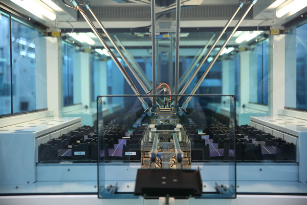 通威太陽(yáng)能(成都)有限公司生產(chǎn)部員工正在做最后的調(diào)試檢查