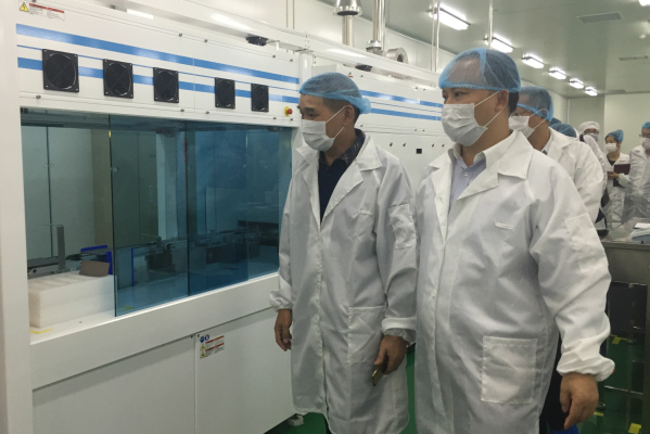 劉漢元主席陪同溫氏集團董事長溫鵬程(左)參觀P5車間