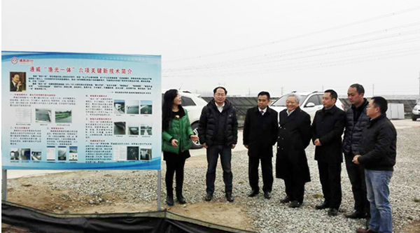 陳紅向嚴(yán)總一行介紹“漁光一體”基地情況