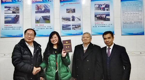 嚴(yán)總向陳紅頒發(fā)四川省科技廳授予的通威國際領(lǐng)先水平“漁光一體”成果證書
