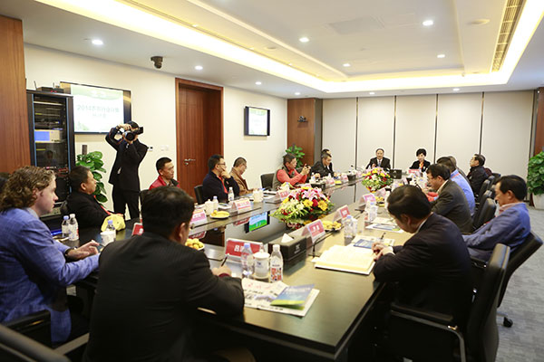 11月24日上午,球賽參賽嘉賓一行20余人訪問通威國際中心,十一屆全國政協常委、通威集團董事局劉漢元主席,集團管亞梅董事長,通威股份嚴虎總裁熱情接待并召開農牧行業形勢研討會。期間,來訪嘉賓們觀摩了通威集團升旗儀式,并參觀集團體驗中心,在聽取講解后,嘉賓們對通威集團的戰略布局、產業發展及未來的規劃發展予以充分認可,通威的企業文化、管理模式、社會責任、發展愿景和穩健發展態勢給各位嘉賓留下了深刻印象。隨后,來訪嘉賓們還來到通威國際中心29樓及32樓,參觀訪問了通威股份信息中心和技術中心,股份信息總監周勇及總裁助理、技術中心主任劉輝芬分別向嘉賓們介紹了通威信息系統建設、技術體系建設等方面取得的成就。