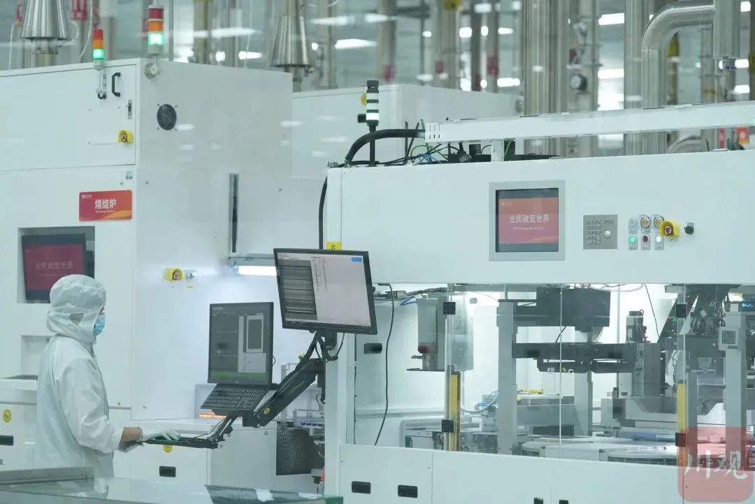 值得一提的是,二期項(xiàng)目8月30日第一臺(tái)設(shè)備進(jìn)場(chǎng),9月16日整線貫通生產(chǎn)、首片電池片下線,整個(gè)過程僅用時(shí)18天。其間先后遭遇高溫、疫情等不利因素,之所以能夠刷新生產(chǎn)速度,除了“防疫泡泡”等閉環(huán)管理模式,也有5G應(yīng)用后人工大幅減少、機(jī)器自動(dòng)化生產(chǎn)的助力。疫情之下,無人工廠優(yōu)勢(shì)凸顯。