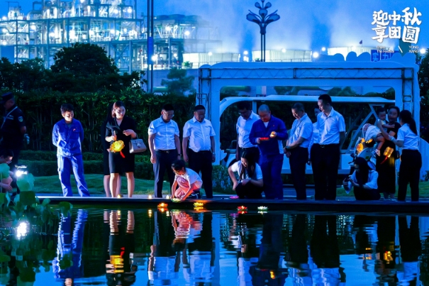此外,游園會還設置了溫馨的打卡點——祈愿墻,員工們紛紛在祈愿墻前合影留念,夜幕降臨,領導和員工們相繼前往永祥湖邊進行放燈祈福,有的希望家人安康,還有的則是對未來生活的美好憧憬。一盞盞河燈隨風輕揚,成為了活動中最亮麗的景色。