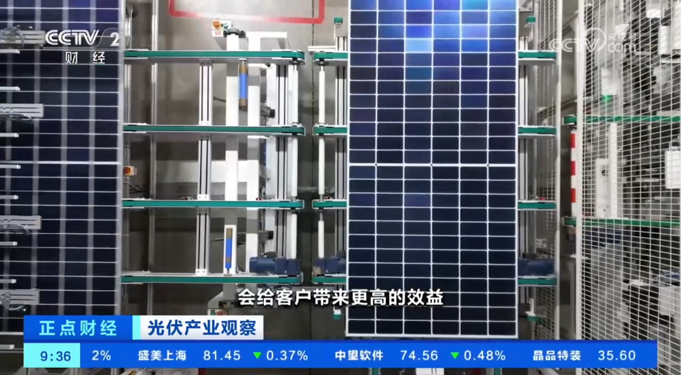 央視CCTV-2《正點財經》欄目播出通威組件智能制造生產車間畫面